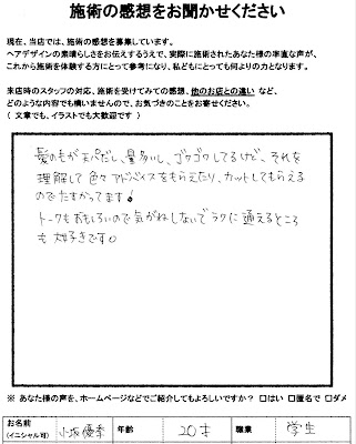 髪の毛が天パだし、量多いし、ゴワゴワしてるけどそれを理解して色々アドバイスをもらえたり、カットしてもらえるので助かってます!