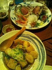 一軒目で串カツとお刺身を食べて二軒目ではチヂミとハラミを食べました…